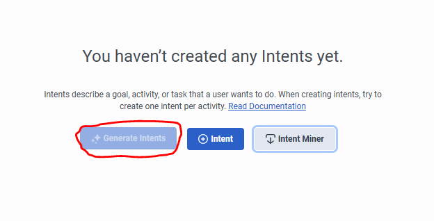 This is probably a dumb question but I am trying to create a digital bot flow (virtual agent) in our dev environment for testing.  However, the "Generate Intents" button is greyed out.  I am assuming this is because the there is not enough transcript data for Genesys to mine the intents.  Can anyone confirm this is true?  If so, has anyone else run into this issue and how do you get around it in a dev env?