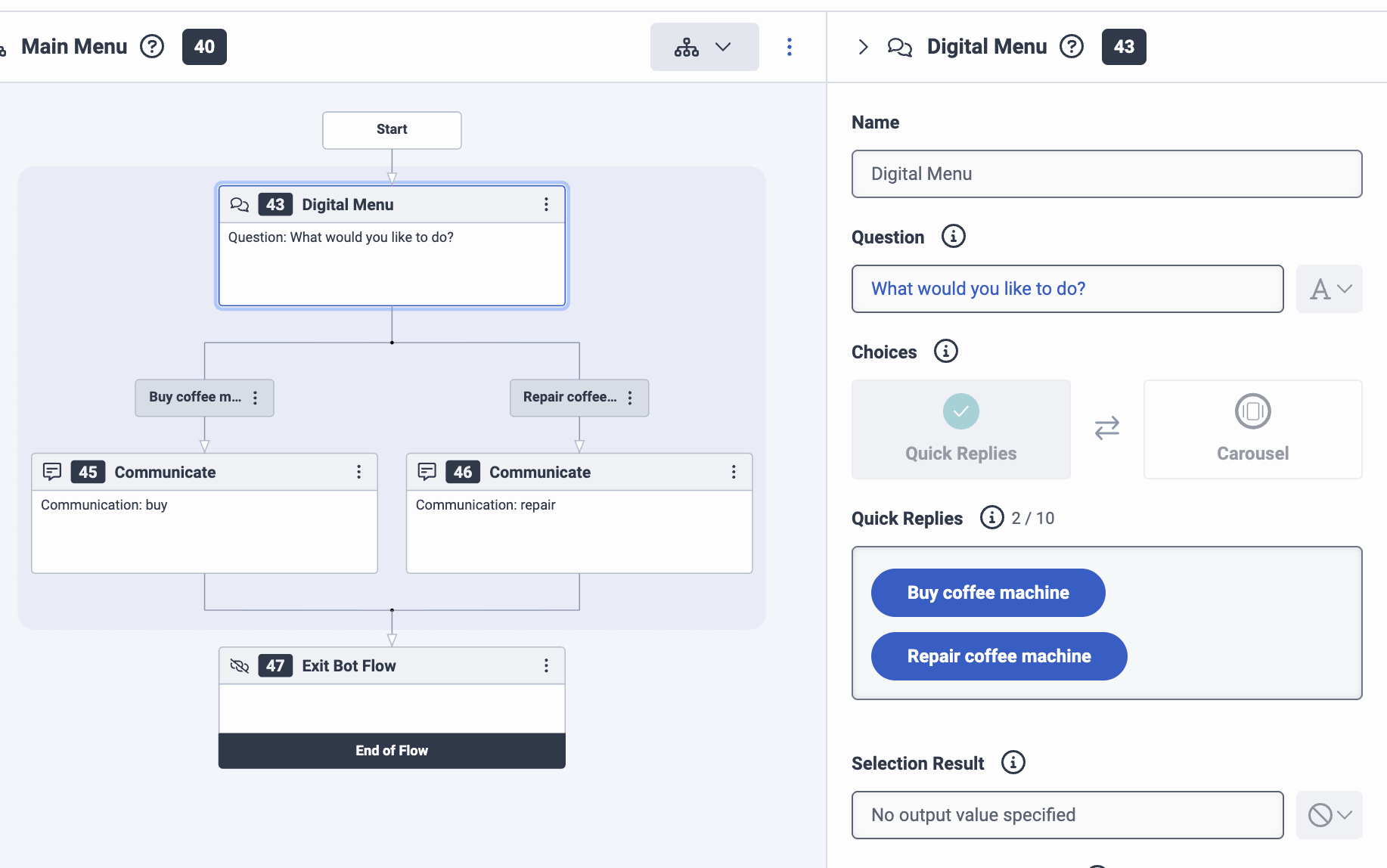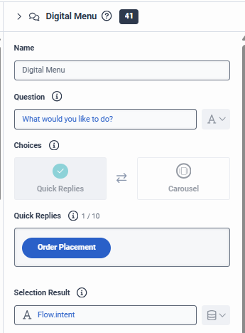 i created a digital bot follow. and i used my intent name as the button for digital menu. and i found that when i click one of the button, ii goes to the branch and i transfer to the re-usable task with related to the specific intent.