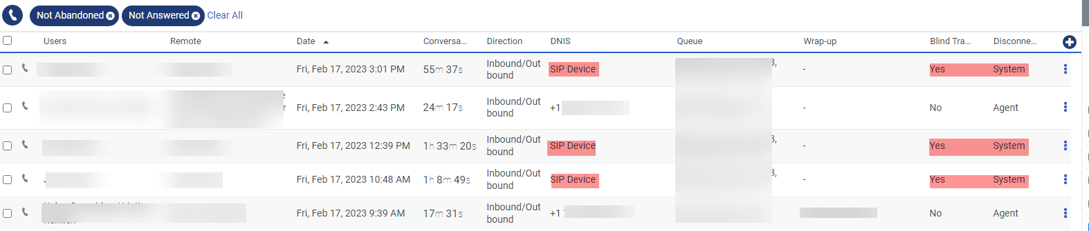 And the Disconnect Reason is Conference Transfer. Anyone else who has experienced this? Aside from knowing what's causing this, we would like to be able to either remove, or reflect this on the summary report in Genesys. But I cannot find a column that would show this.