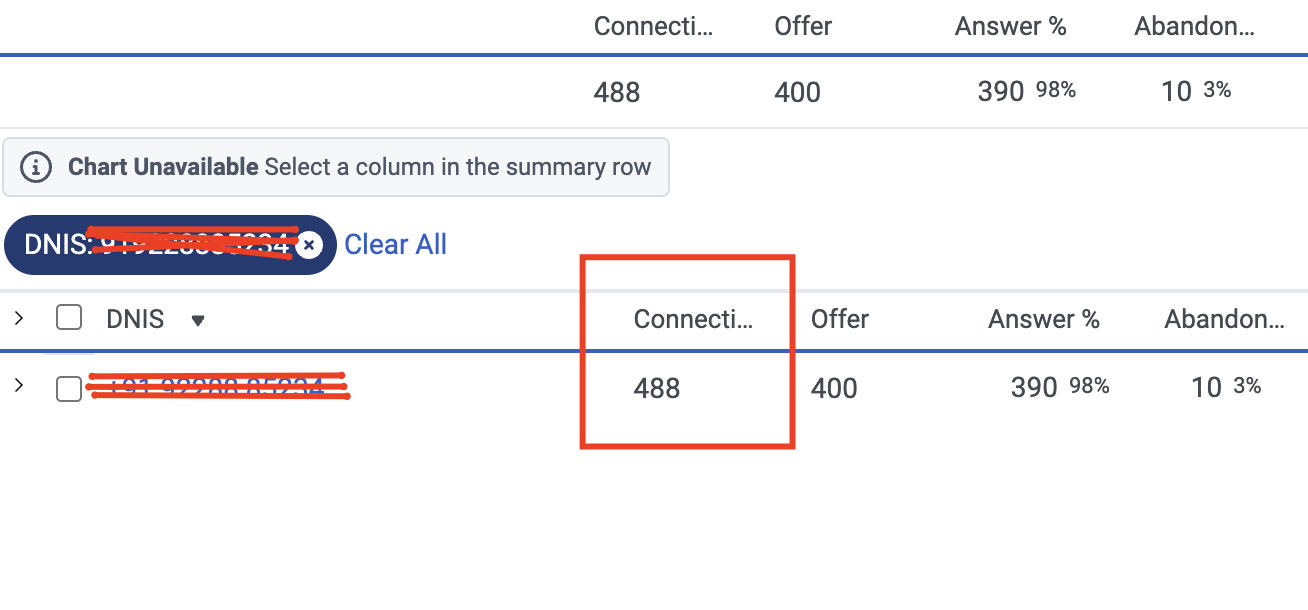 I checked our report and it seems that blank connections metric appears when the phone number was used for outbounds. Some phone numbers as I can see in our case are used for both inbound and outbound - then it may occur thart connection is not blank, but still less than offered. Try playing with direction filter - maybe you have the same?