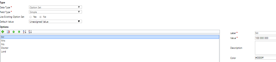 set option type field.
