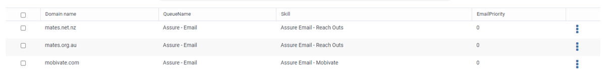 In the Data table below I have these domains.  The mates domains route and assign a skill fine, but the mobivate domain doesn't.  I have another data table to routes via a specific email address, and even the full email address doesn't route either, which baffles me.  I've cut and paste the formatting of the domain so many times and made sure there's no trailing spaces and all that.  Domain is mobivate.com