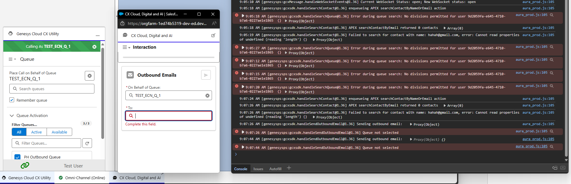 also user can send outbound email when using genesys web interface. anyone might have encountered this? How to fix?