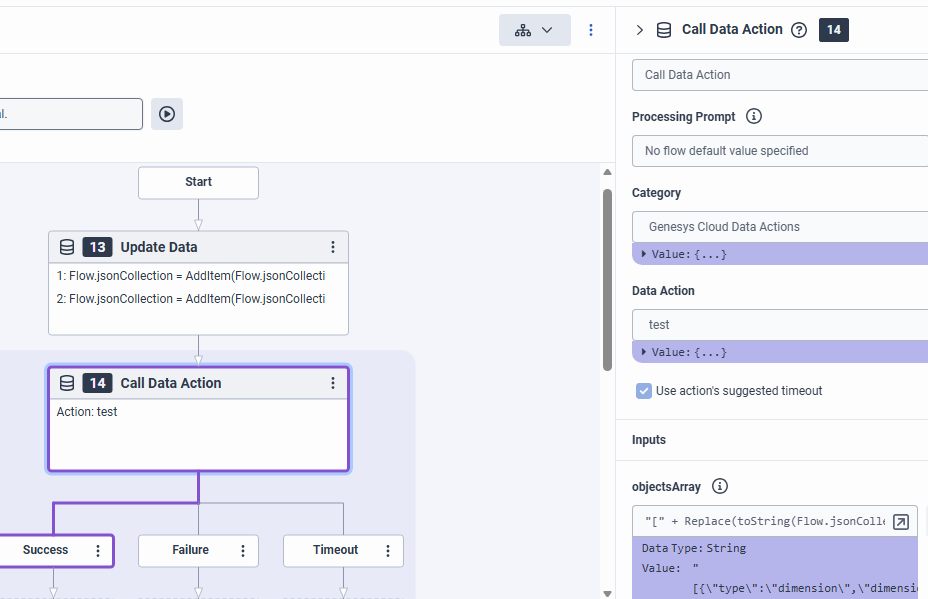 Subject: Error in passing a dynamic array of JSON objects using Data Action