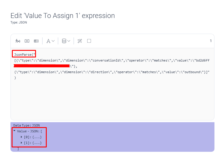 Now, just to show you an example on Architect, I create a JSON variable, and put all that information in there (using JsonParse() function):