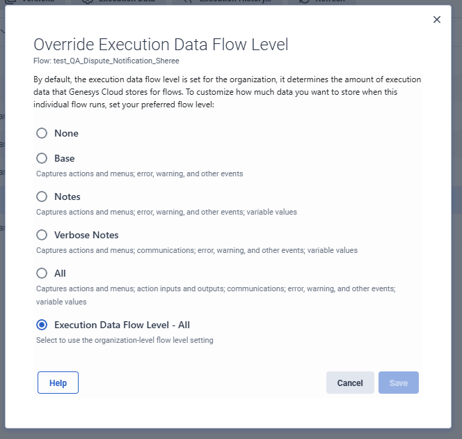 Awesome! Now if you can, try disputing a test evaluation in your Genesys environment. If the flow is simply sending an email notification, it shouldn't take very long for that to appear. If nothing happens, check that Execution History mentioned above.
