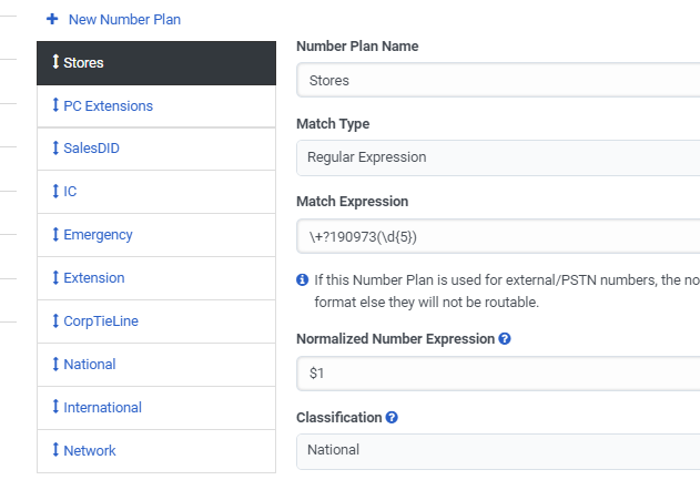I don't know what Classification you use for those short numbers to stores. The above example takes the long number which is in a format that can be added to an external contact, strips off all but the last 5 digits, and sends those outbound.