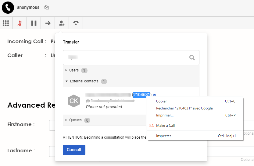 There are stores with long numbers (e.g +33xxxxxxxx), in this case, I create the store in External Contacts and the agents just type the name of the store and they can directly call them.