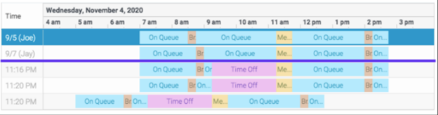 You can now view changes to an agent's schedule that occur between saves. This will give you greater insight into changes and information like the date of each change, who changed the shift and the shift's paid hours.