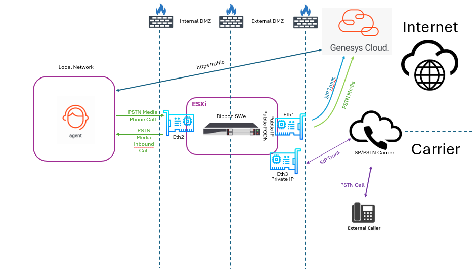 I was thinking we could connect our Telco to an eSBC using a private IP interface, while leveraging public IPs for the Genesys connectivity.