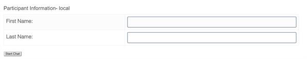 <table class="webchat-config"> <tbody> <tr> <th>First Name:</th> <td><input type="text" id="first-name" value="John" /></td> </tr> <tr> <th>Last Name:</th> <td><input type="text" id="last-name" value="Doe" /></td> </tr>