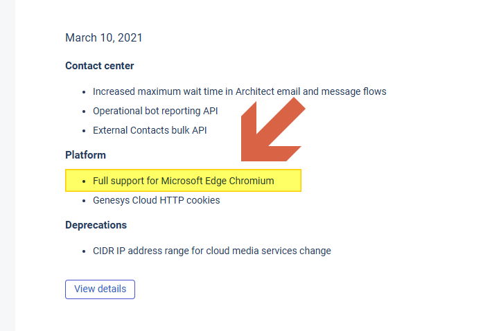 Additionally, On March 10, 2021, Genesys announced full support for Microsoft Edge (Chromium-based):