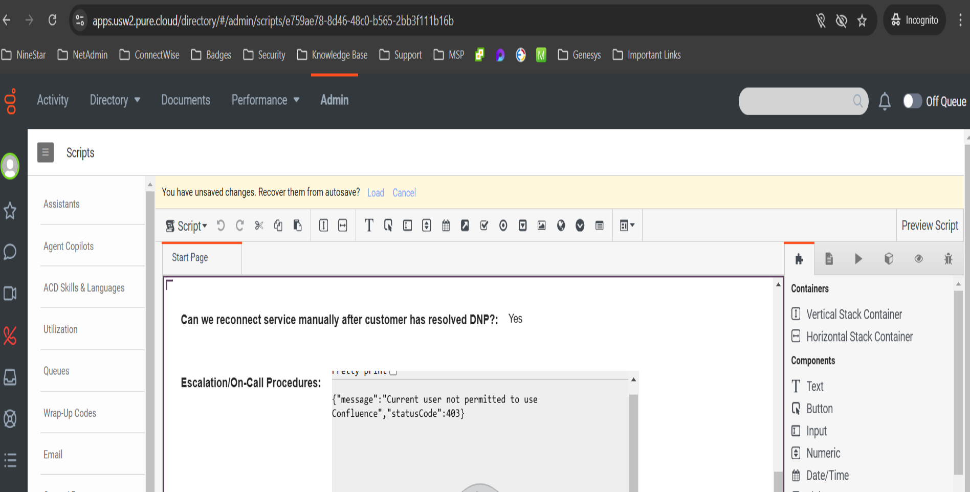 Subject: Genesys to Confluence API Key Issues