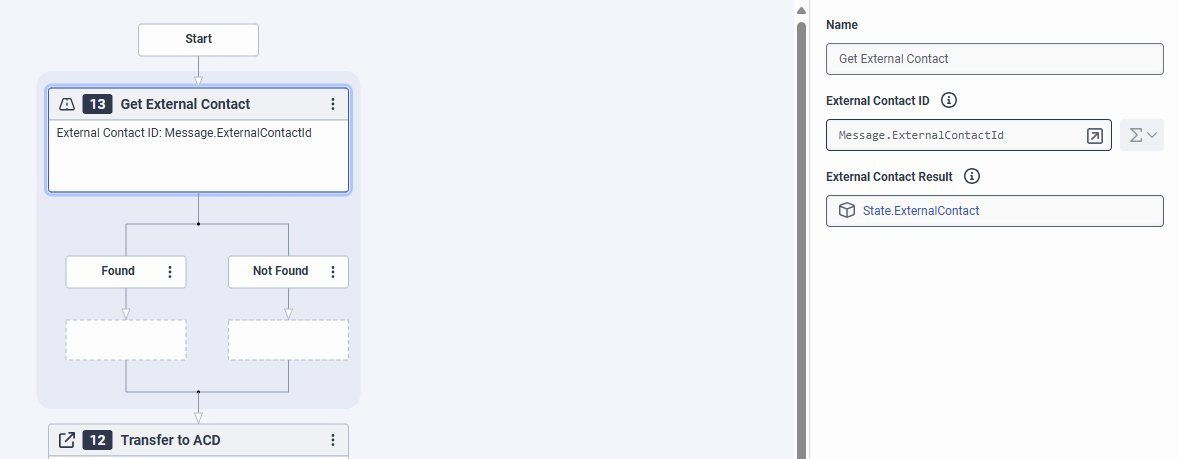 In the Get External Contact action you should use the built-in variable Call.ExternalContactId (presuming a Call flow...equivalent variable in other flow types) in the External Contact ID field.