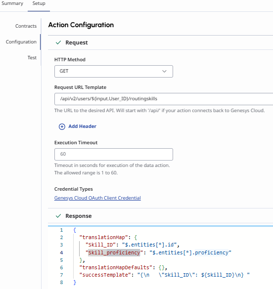 Hello, I am looking to create a data action that can collect the skills (and skill proficiency) for a user. I am using the API /api/v2/users/${input.User_ID}/routingskills but I am having trouble with the translation map.