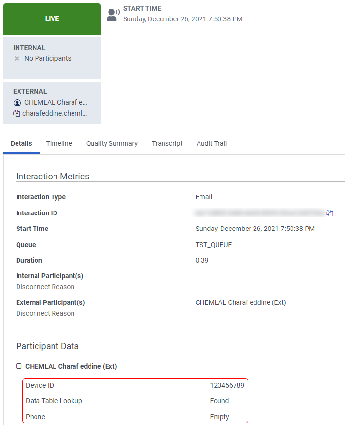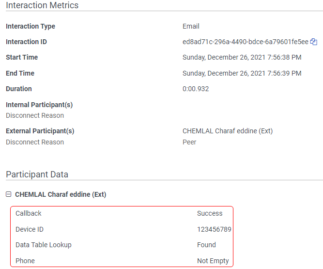 In this case, as you can see, The Device ID was successfully extracted from the Inbound Email. The Phone Variable is set to empty since nothing was stored in the Data Table. As expected, the email was routed to the Queue.