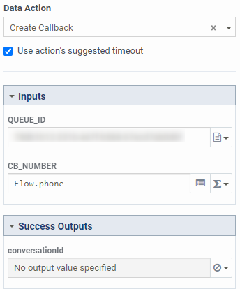 - If you would like to assign a skill to the Callback, a script, priority... these are optional but you can adjust the data actions inputs if it is needed in your design.