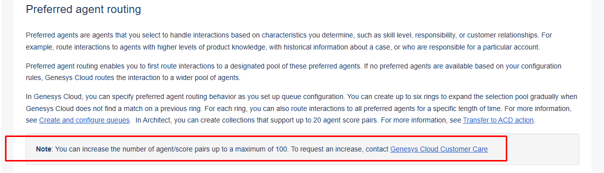 Thank you for your responses. Please note the initial limit of 20 collections agent/score can be increased to 100 if needed by requesting the limit increase from Genesys Care.
