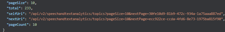 Due to this constraint, we can't actually see all of our topics via the API, as pageSize is capped at 500. Since our total Topics = 530, you can't paginate to 2nd page to see the last 30.