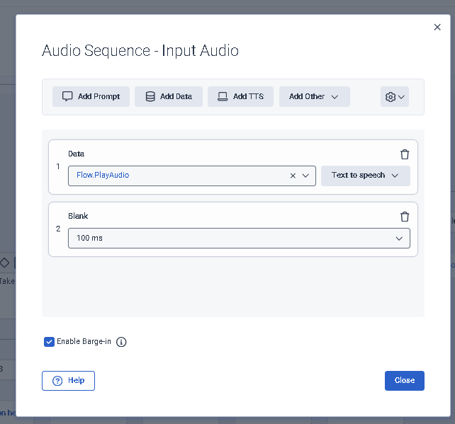 in the "Input Audio" enter the variable name PlayAudio.