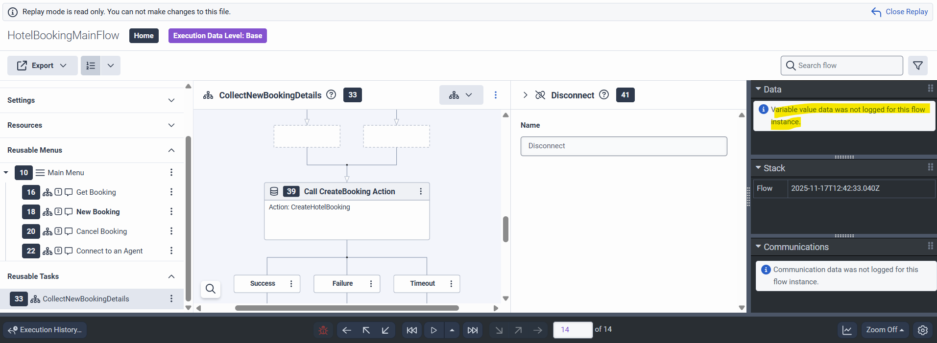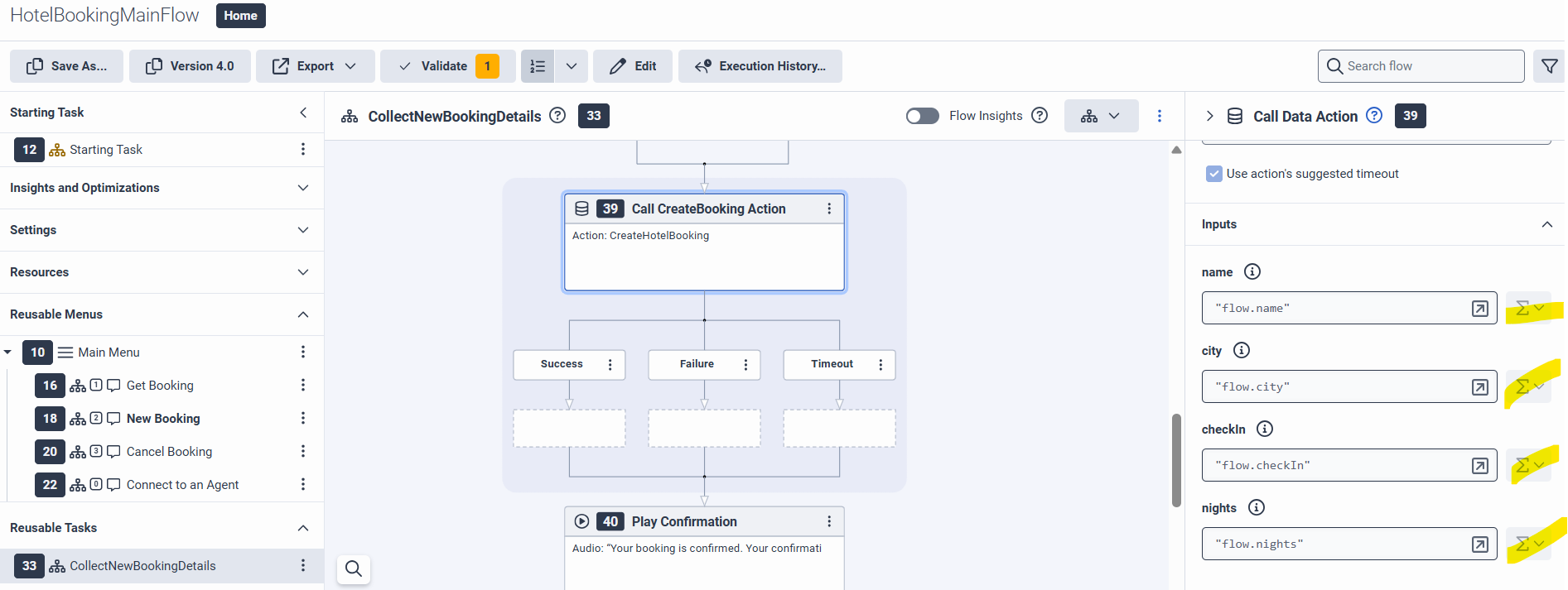 Hi @Luiz Rosa - Thank you for your kind response. I have progressed and completed the flow. But when I tested the flow, the flow is working properly. But create hotel booking API is not being called or the values are not passed. Would it be possible to help to triage the issue.