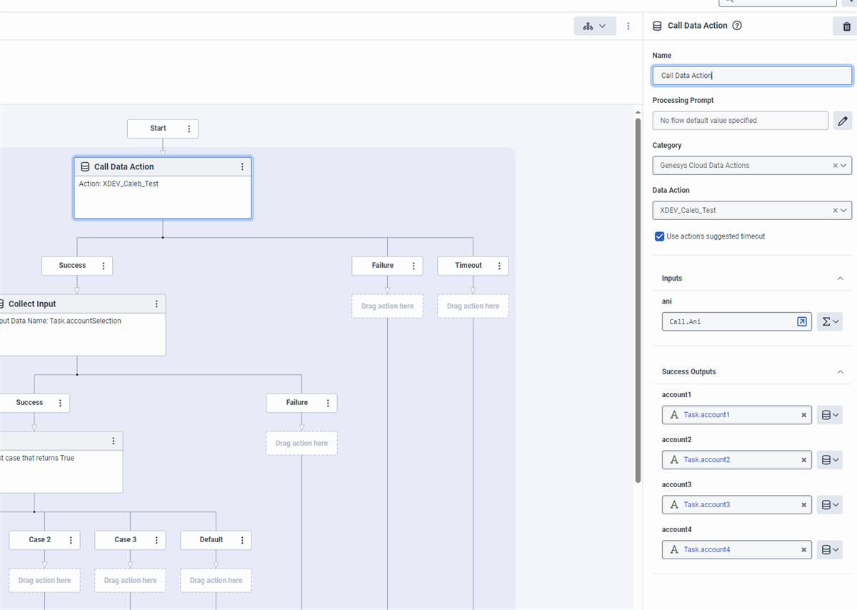 1) How should the data be structured that is picked up by the data action? As in, can the process that is built handle an array of accounts of any size or we need to limit the size or map it to literal "account1, account2" variables? I've never used an array in this manner, but I know they exist. Genesys calls them "Collections". Create a collection variable - Genesys Cloud Resource Center (mypurecloud.com) or Maybe something with a data table? It's possible to loop through the lines within the table / update table via API. You can also map it to a literal value, which I would do if you don't have that many accounts. I would recommend looking around on the developer forum as I'm sure someone else has had a similar question. Genesys Cloud Developer Forum