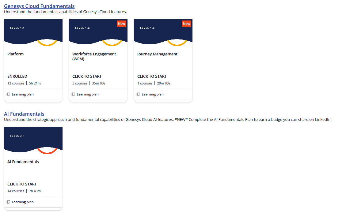 - Now you can enjoy a selection of free courses organized in two categories: Genesys Cloud Fundamentals and AI Fundamentals