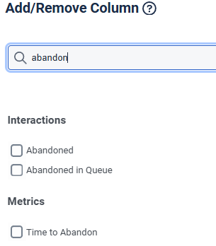 When looking at the Interactions list view, you can add a column to indicate which calls were abandoned.
