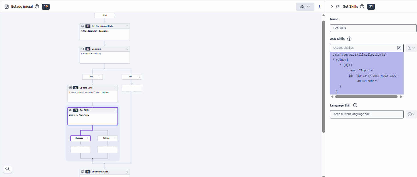 Regarding the skill, you can use the "Set Skills" action in the flow to assign it, just keep in mind that the queue must be configured to use skills, otherwise the assignment won't take effect.