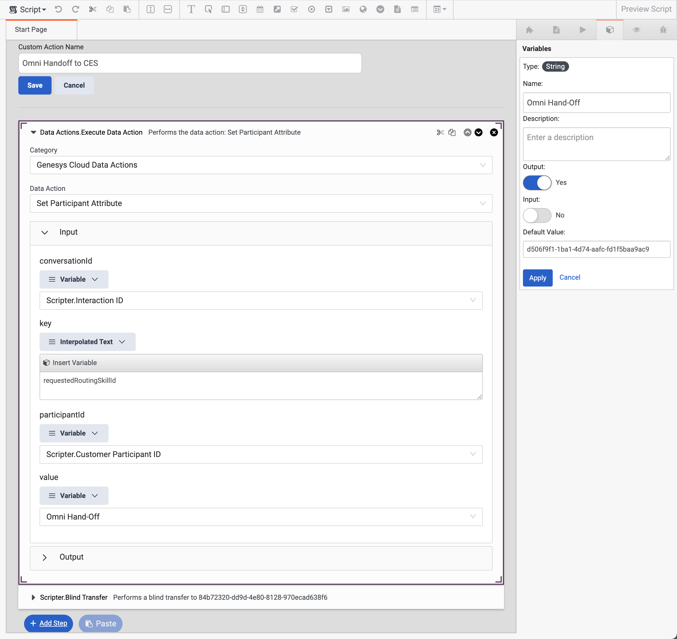 Robert, sorry for not including this earlier. The use case is this: Team A needs to transfer an email interaction to other members within the same queue for escalation purposes. Only certain queue members will be assigned an escalation skill. I was hoping to rely on the Script to tag or update the email conversion with an attribute and to be accessible within an In Queue Email flow so that I can identify the email interaction that have been escalated by using a Get Participant Data Action. Then once identified, I can apply skill assignment and routing logic. Likely other ways to accomplish the same outcome, was just hoping to leverage existing Queues and not add any new Queues. The screenshot does show the desired Tag being applied to the conversion after using the Script button to apply the Tag and perform the blind transfer.