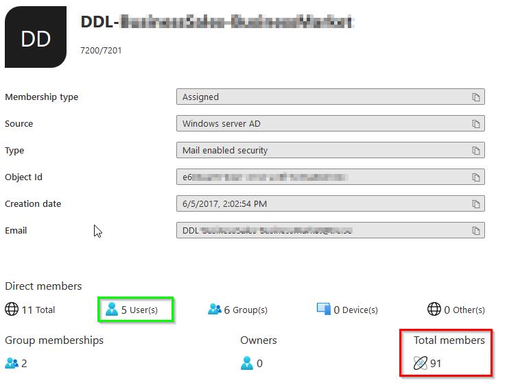 When using Azure AD and Genesys Enterprise app in replacement for the AD sync we use to have with Bridge, we don't get the same result. We used to have a top group with a lot of sub groups. And with a ldap oneliner we got them all synched. Now if we do the same. We just get the direct members in that group synched. in this example 5 users, the rest of the 91 users are not recursively matched.