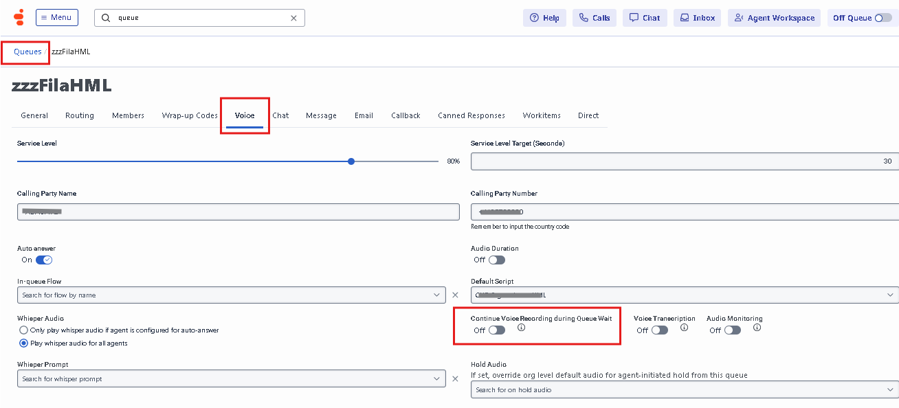 Goal: Ensure calls are not recorded (or are suppressed) when they land in Queue B.