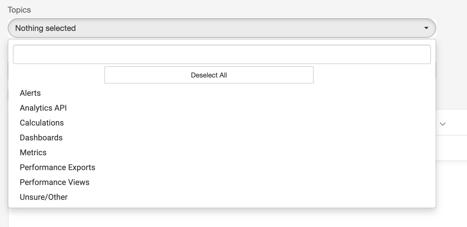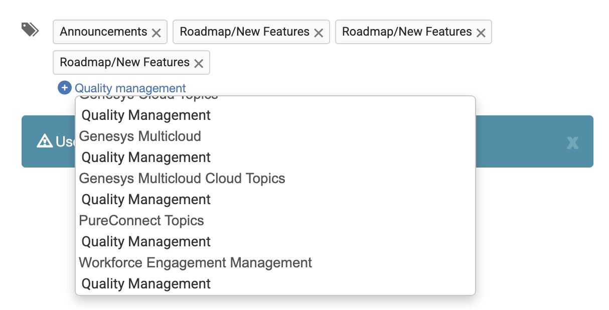 Most of our communities have Topic Tags. These are the tags that must be chosen before a discussion can go live. Here is an example from our friends at the Reporting & Analytics Community