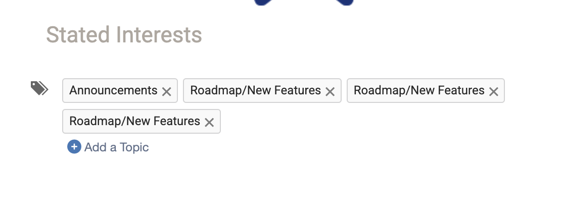 To do this, you want to go to your profile and navigate to the bottom of the page (below all of those cool badges you have earned). And look for "Stated Interests":