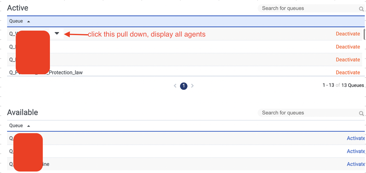 is there a view that display active status for all agents ? like below image, click pull down button, display all agents assigned to this queue, then supervisor can easily inactive agent A in this queue A and active agent A to queue B.