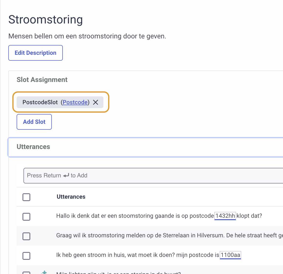 I've created a slot with a custom RegEx type to match a zipcode. The slot is assigned to the Intent and even to some specific utterances. No matter how i phrase my message the slot never gets recognised and filled in. So when I ask for the slot later in the flow it will never skip this question.