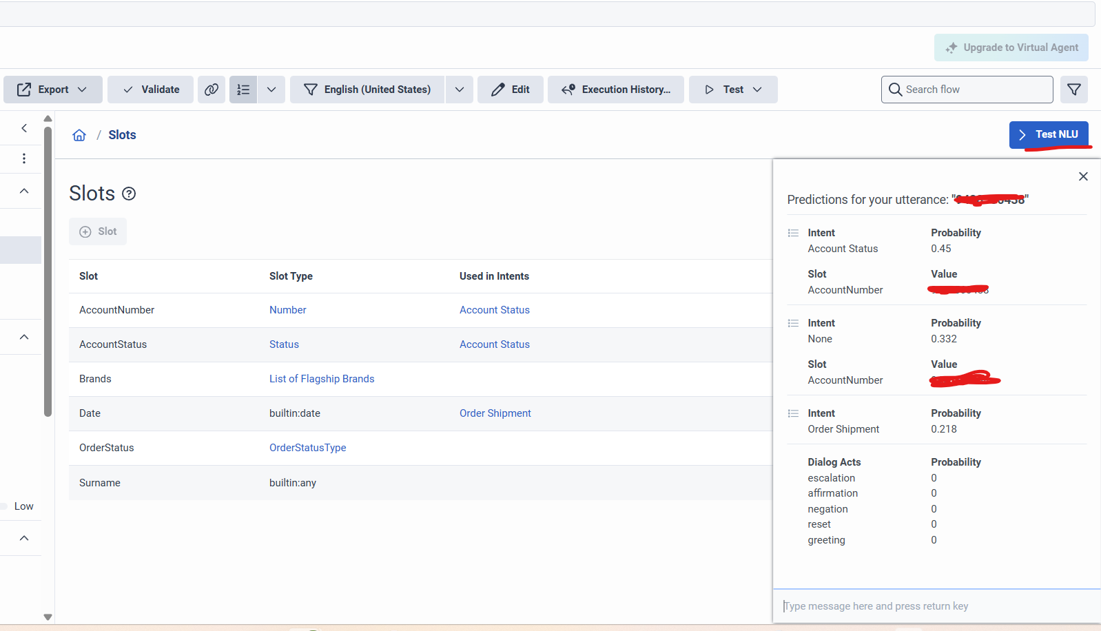 If you test this on the slot type or in the Test NLU, does it show as valid or have an intent probability or slot value?