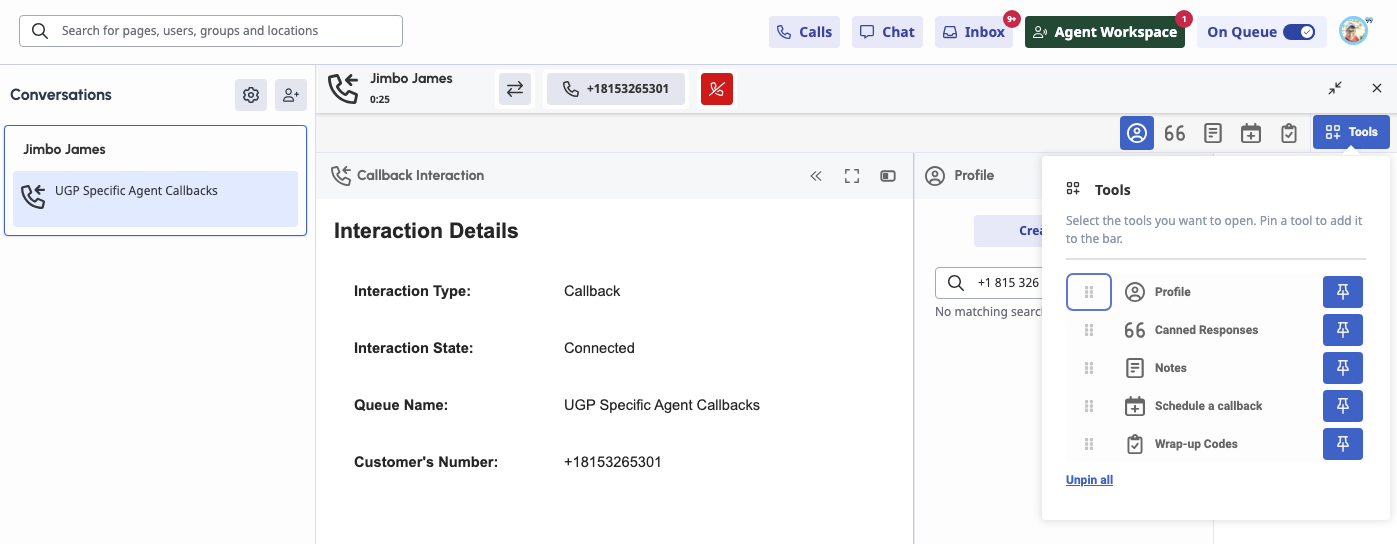 For Voice and Callback interactions, the script loads directly in the center of the screen, which is why it doesn't appear under the "Tools" tab.