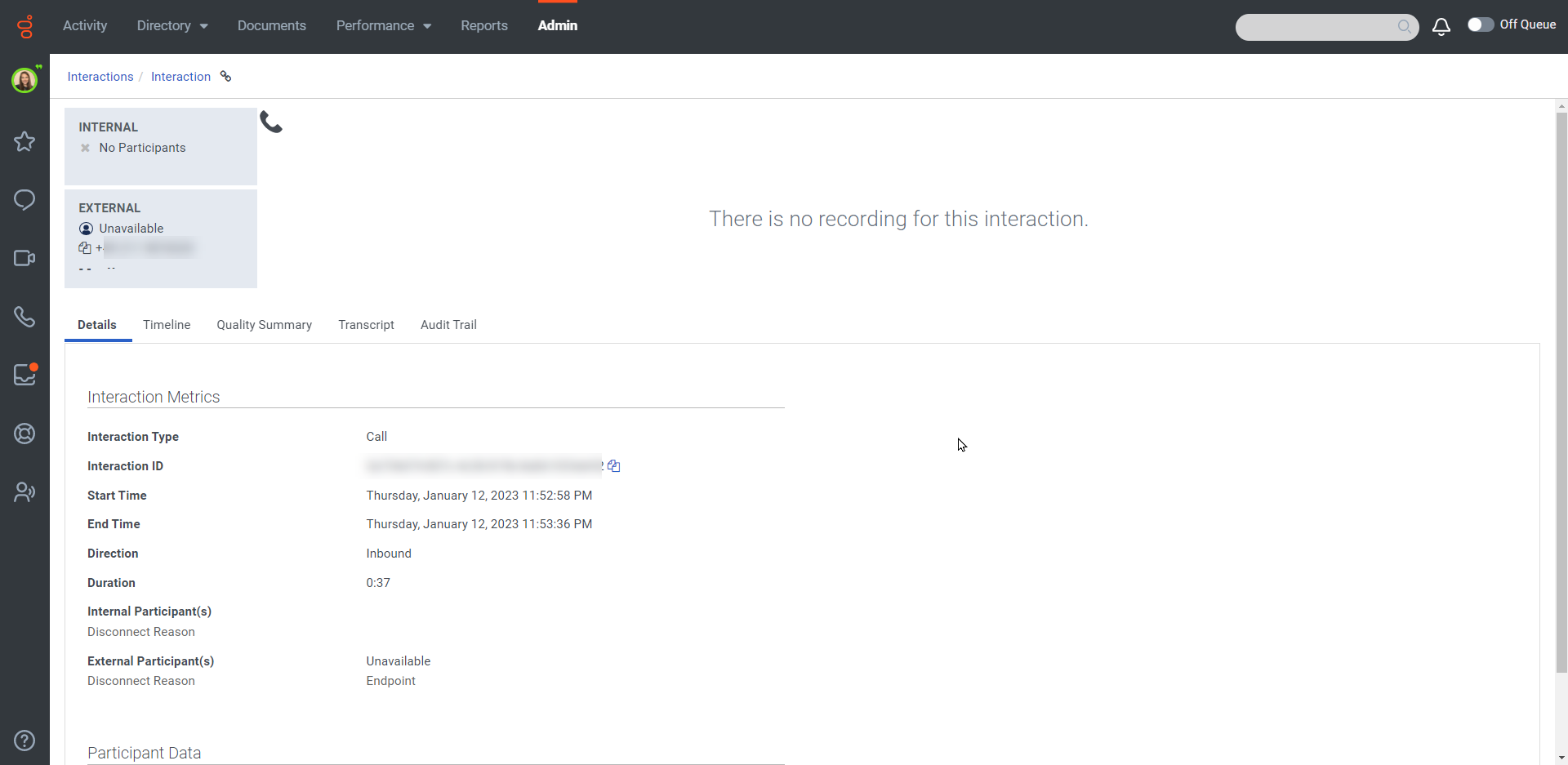 When filtering on the Interactions Performance View by "has recording," Interactions are still appearing that say "no recording for this interaction" when opened. Why would they show in the list of interactions as "having a recording?"