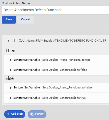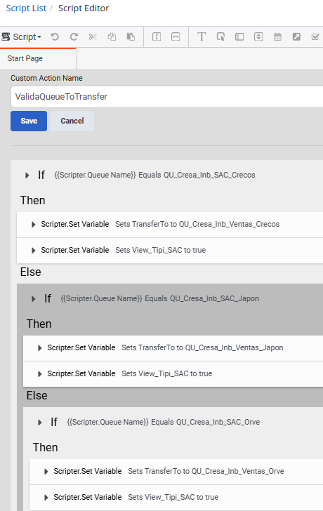 A custom action was configured to validate the queue name to show or hide a container, but it works intermittently. Sometimes the validation works correctly, and other times it doesn't.