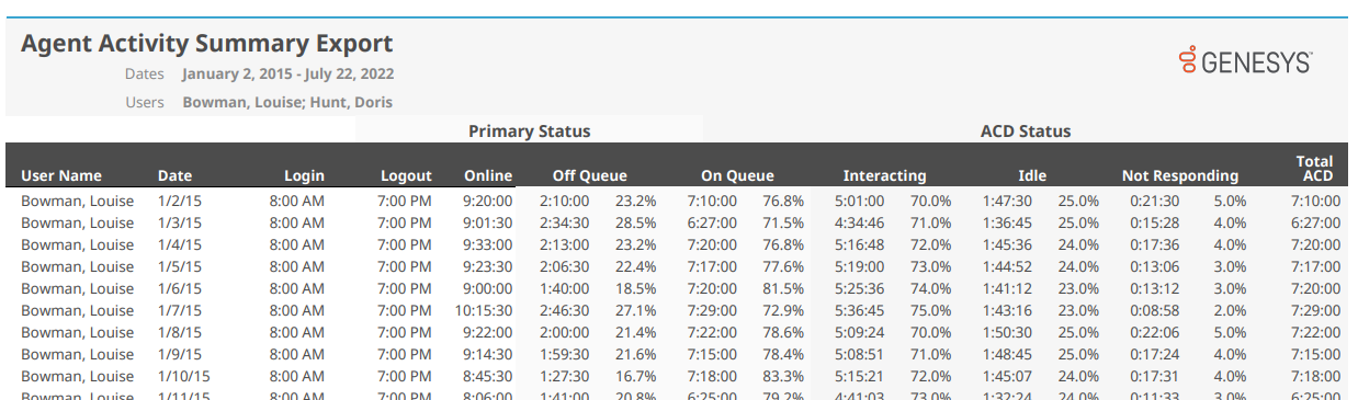 For example, if an agent works 8am-5pm PST, we'd like to be able to identify how they spent their time from 8am-815am or 8am-830am via statuses.