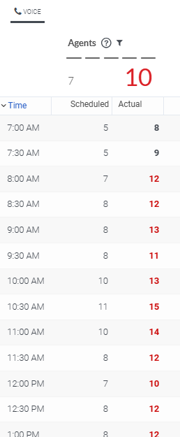 Also, is there any reporting within Intraday (or elsewhere in Performance/Insights) that shows which specific agents contributed to Actual staffing for a given interval, even if they didn't have a schedule in that MU?