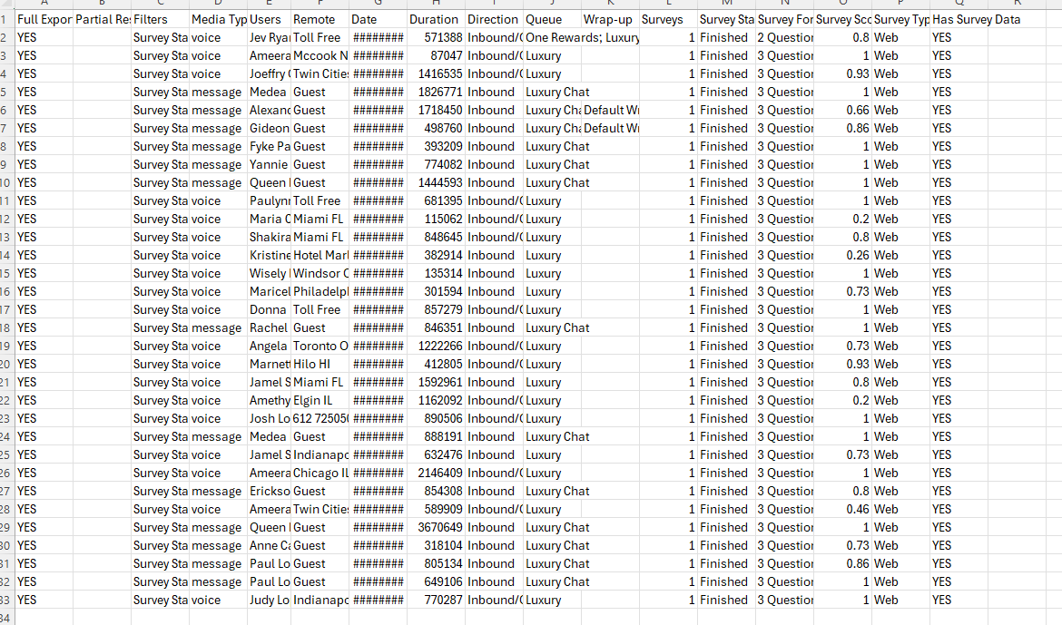 I hope this message finds you well. I wanted to reach out to see if anyone has found a way to extract detailed survey data, specifically the scores from 2 and 3 question surveys, directly from Genesys Cloud.