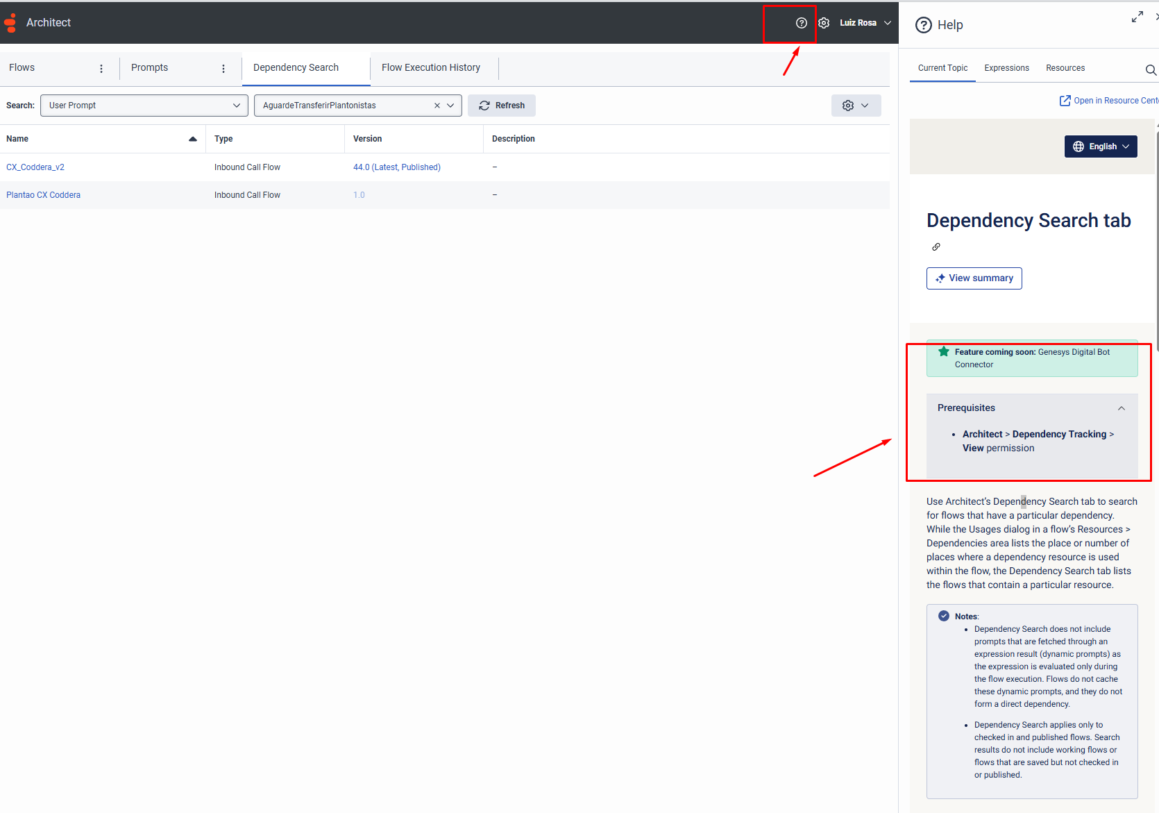 Architect → Prompts → Open a Prompt → Click "Consuming Flows"