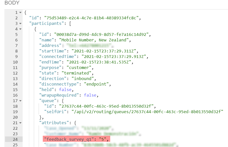 I was thinking the user selection could set a specific wrap up code (e.g. if the customer selects 5 for very satisfied then we choose this as the wrap-up code) which then makes the reporting persistent.