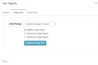 Date range > Choose from Billable Usage, Concurrent Usage Report or Resources Usage Report.