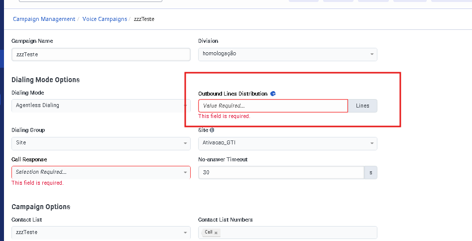 An option is you used the "Outbound Lines Distribution" to specify how many simultaneous calls to place at a given time for an agentless campaign. For example, if you set the value to 10, the agentless campaign will try to have 10 active calls at all times.