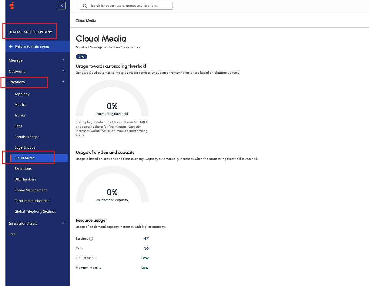 Genesys has CloudyMedia, where you can view real-time information, but not historical data.