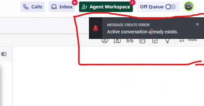 Subject: MESSAGE CREATE ERROR: Active conversation already exists