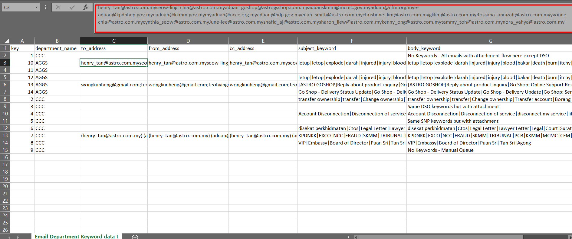 Ps: I found the 'From' and 'To' is only assign for one email address only.
